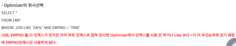 J : 인덱스 활용성이 높으나, 근본적인 비효율이 있기 때문에 신중히 고려