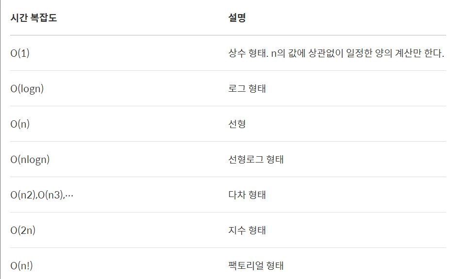 이것을 알고리즘의 시간복잡도라고 한다.